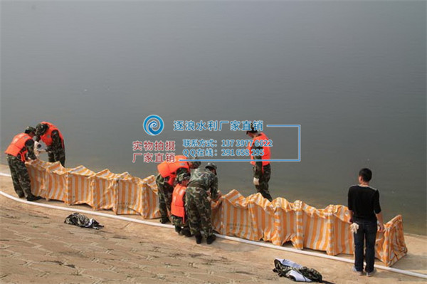 6、联接:堵水墙节点与节点之间互联串接,专用防水布的联接处采用双线逢合,面料内层经过防漏水技术处理,多个折叠堵水墙之间可进行无缝联接。